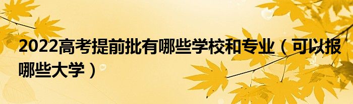 大家好,小高来为大家解答以上问题。2022高考提前批有哪些学校和专业,可以报哪些大学很多人还不知道,现在让我们一起来看看吧!