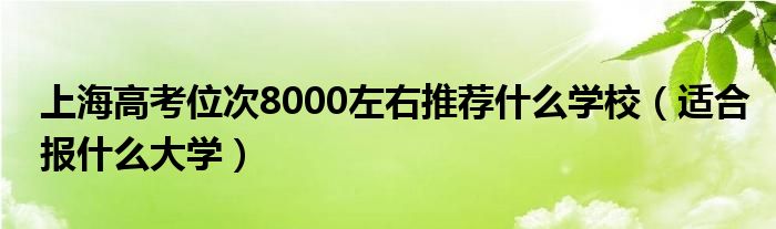 大家好,小高来为大家解答以上问题。上海高考位次8000左右推荐什么学校,适合报什么大学很多人还不知道,现在让我们一起来看看吧!