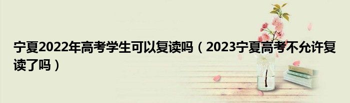 大家好,小高来为大家解答以上问题。宁夏2022年高考学生可以复读吗,2023宁夏高考不允许复读了吗很多人还不知道,现在让我们一起来看看吧!