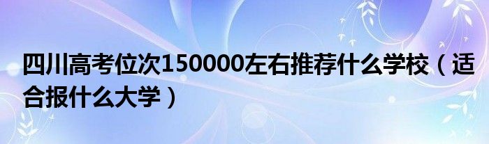 大家好,小高来为大家解答以上问题。四川高考位次150000左右推荐什么学校,适合报什么大学很多人还不知道,现在让我们一起来看看吧!