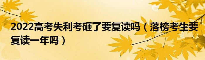 大家好,小高来为大家解答以上问题。2022高考失利考砸了要复读吗,落榜考生要复读一年吗很多人还不知道,现在让我们一起来看看吧!