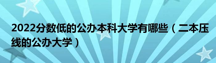 大家好,小高来为大家解答以上问题。2022分数低的公办本科大学有哪些,二本压线的公办大学很多人还不知道,现在让我们一起来看看吧!