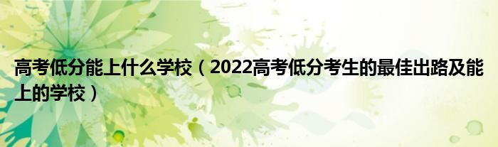 大家好,小高来为大家解答以上问题。高考低分能上什么学校,2022高考低分考生的最佳出路及能上的学校很多人还不知道,现在让我们一起来看看吧!