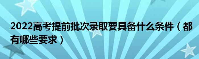大家好,小高来为大家解答以上问题。2022高考提前批次录取要具备什么条件,都有哪些要求很多人还不知道,现在让我们一起来看看吧!