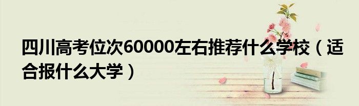 大家好,小高来为大家解答以上问题。四川高考位次60000左右推荐什么学校,适合报什么大学很多人还不知道,现在让我们一起来看看吧!