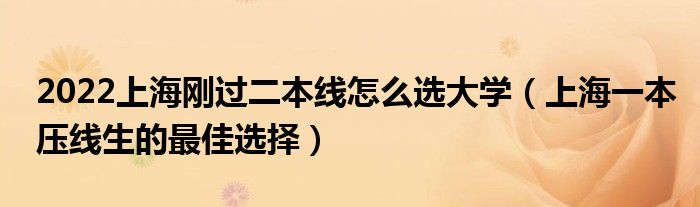 大家好,小高来为大家解答以上问题。2022上海刚过二本线怎么选大学,上海一本压线生的最佳选择很多人还不知道,现在让我们一起来看看吧!