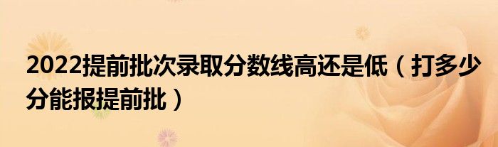 大家好,小高来为大家解答以上问题。2022提前批次录取分数线高还是低,打多少分能报提前批很多人还不知道,现在让我们一起来看看吧!