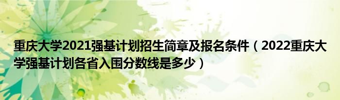 大家好,小高来为大家解答以上问题。重庆大学2021强基计划招生简章及报名条件,2022重庆大学强基计划各省入围分数线是多少很多人还不知道,现在让我们一起来看看吧!