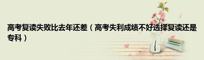 大家好,小高来为大家解答以上问题。高考复读失败比去年还差,高考失利成绩不好选择复读还是专科很多人还不知道,现在让我们一起来看看吧!