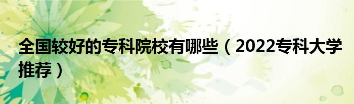 大家好,小高来为大家解答以上问题。全国较好的专科院校有哪些,2022专科大学推荐很多人还不知道,现在让我们一起来看看吧!