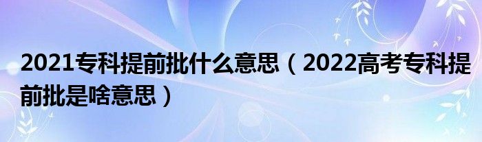 大家好,小高来为大家解答以上问题。2021专科提前批什么意思,2022高考专科提前批是啥意思很多人还不知道,现在让我们一起来看看吧!