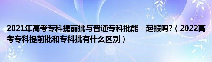 大家好,小高来为大家解答以上问题。2021年高考专科提前批与普通专科批能一起报吗?,2022高考专科提前批和专科批有什么区别很多人还不知道,现在让我们一起来看看吧!