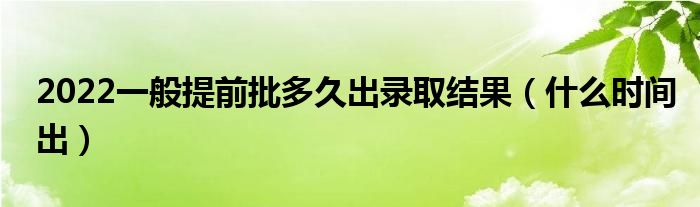 大家好,小高来为大家解答以上问题。2022一般提前批多久出录取结果,什么时间出很多人还不知道,现在让我们一起来看看吧!