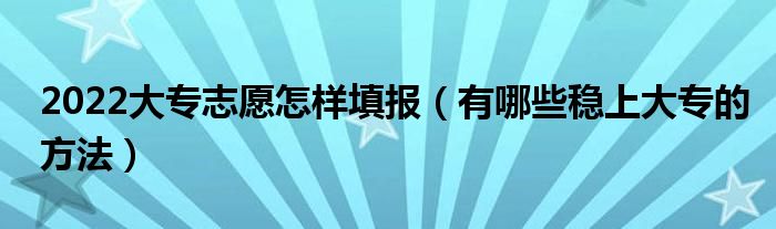 大家好,小高来为大家解答以上问题。2022大专志愿怎样填报,有哪些稳上大专的方法很多人还不知道,现在让我们一起来看看吧!