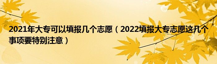 大家好,小高来为大家解答以上问题。2021年大专可以填报几个志愿,2022填报大专志愿这几个事项要特别注意很多人还不知道,现在让我们一起来看看吧!