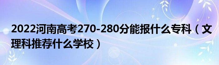 大家好,小高来为大家解答以上问题。2022河南高考270-280分能报什么专科,文理科推荐什么学校很多人还不知道,现在让我们一起来看看吧!