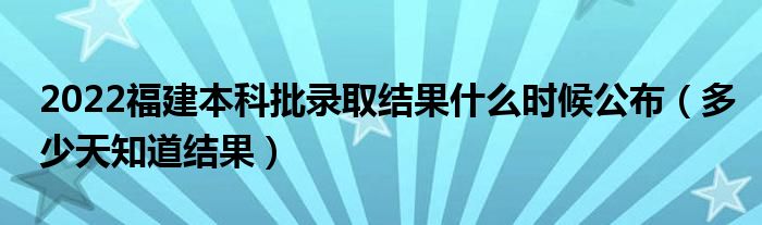 大家好,小高来为大家解答以上问题。2022福建本科批录取结果什么时候公布,多少天知道结果很多人还不知道,现在让我们一起来看看吧!