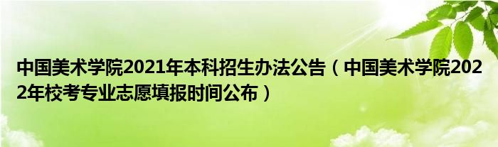 大家好,小高来为大家解答以上问题。中国美术学院2021年本科招生办法公告,中国美术学院2022年校考专业志愿填报时间公布很多人还不知道,现在让我们一起来看看吧!