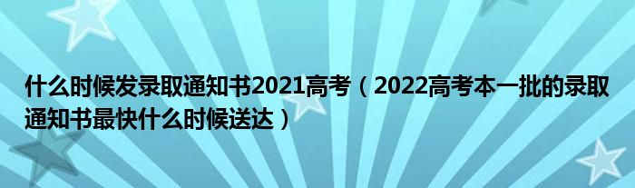大家好,小高来为大家解答以上问题。什么时候发录取通知书2021高考,2022高考本一批的录取通知书最快什么时候送达很多人还不知道,现在让我们一起来看看吧!