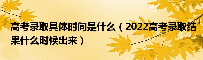大家好,小高来为大家解答以上问题。高考录取具体时间是什么,2022高考录取结果什么时候出来很多人还不知道,现在让我们一起来看看吧!