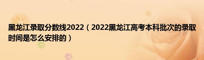 一、2022黑龙江高考各录取批次时间安排是什么