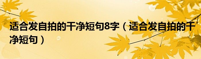 大家好,小君来为大家解答以上问题。适合发自拍的干净短句8字,适合发自拍的干净短句很多人还不知道,现在让我们一起来看看吧!