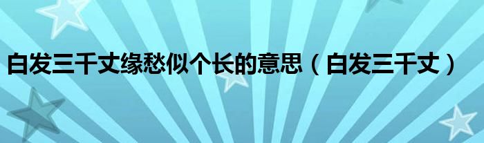 大家好,小君来为大家解答以上问题。白发三千丈缘愁似个长的意思,白发三千丈很多人还不知道,现在让我们一起来看看吧!