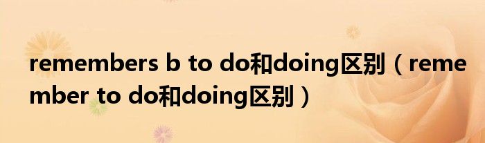 大家好,小君来为大家解答以上问题。remembers b to do和doing区别,remember to do和doing区别很多人还不知道,现在让我们一起来看看吧!