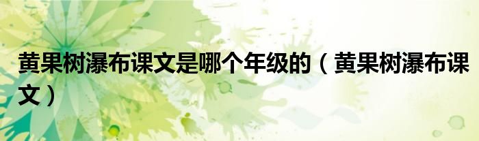 大家好,小君来为大家解答以上问题。黄果树瀑布课文是哪个年级的,黄果树瀑布课文很多人还不知道,现在让我们一起来看看吧!