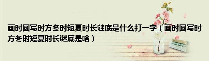 大家好,小君来为大家解答以上问题。画时圆写时方冬时短夏时长谜底是什么打一字,画时圆写时方冬时短夏时长谜底是啥很多人还不知道,现在让我们一起来看看吧!