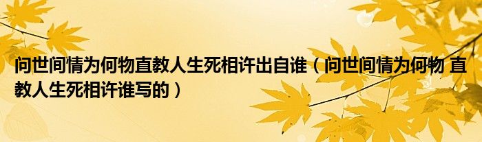 大家好,小君来为大家解答以上问题。问世间情为何物直教人生死相许出自谁,问世间情为何物 直教人生死相许谁写的很多人还不知道,现在让我们一起来看看吧!
