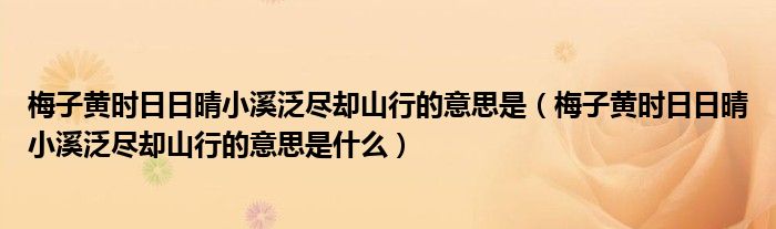 大家好,小君来为大家解答以上问题。梅子黄时日日晴小溪泛尽却山行的意思是,梅子黄时日日晴小溪泛尽却山行的意思是什么很多人还不知道,现在让我们一起来看看吧!