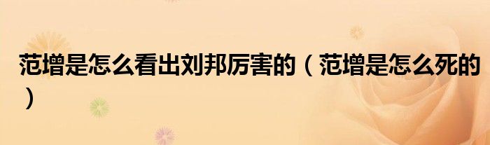 大家好,小君来为大家解答以上问题。范增是怎么看出刘邦厉害的,范增是怎么死的很多人还不知道,现在让我们一起来看看吧!