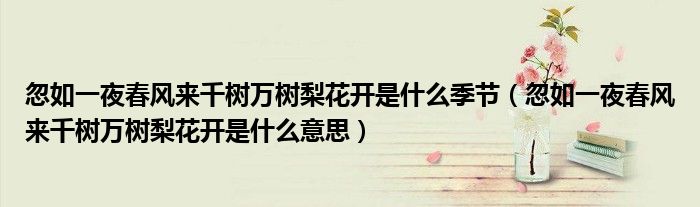 大家好,小君来为大家解答以上问题。忽如一夜春风来千树万树梨花开是什么季节,忽如一夜春风来千树万树梨花开是什么意思很多人还不知道,现在让我们一起来看看吧!