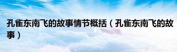 大家好,小君来为大家解答以上问题。孔雀东南飞的故事情节概括,孔雀东南飞的故事很多人还不知道,现在让我们一起来看看吧!