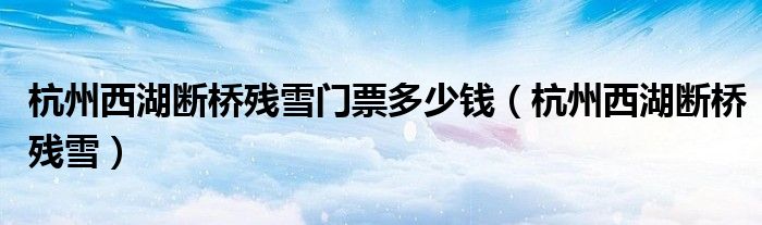 大家好,小君来为大家解答以上问题。杭州西湖断桥残雪门票多少钱,杭州西湖断桥残雪很多人还不知道,现在让我们一起来看看吧!