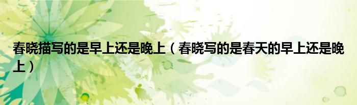 大家好,小君来为大家解答以上问题。春晓描写的是早上还是晚上,春晓写的是春天的早上还是晚上很多人还不知道,现在让我们一起来看看吧!