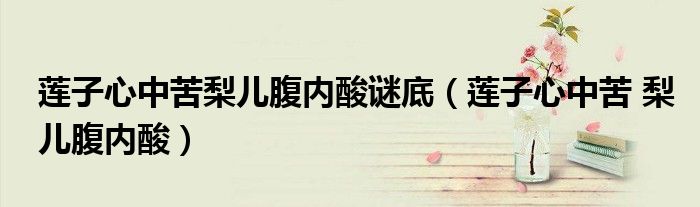 大家好,小君来为大家解答以上问题。莲子心中苦梨儿腹内酸谜底,莲子心中苦 梨儿腹内酸很多人还不知道,现在让我们一起来看看吧!