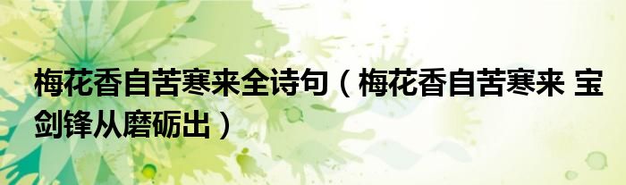 大家好,小君来为大家解答以上问题。梅花香自苦寒来全诗句,梅花香自苦寒来 宝剑锋从磨砺出很多人还不知道,现在让我们一起来看看吧!