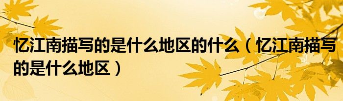 大家好,小君来为大家解答以上问题。忆江南描写的是什么地区的什么,忆江南描写的是什么地区很多人还不知道,现在让我们一起来看看吧!