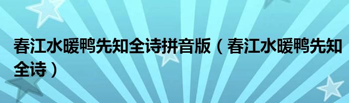 大家好,小君来为大家解答以上问题。春江水暖鸭先知全诗拼音版,春江水暖鸭先知全诗很多人还不知道,现在让我们一起来看看吧!