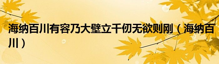 大家好,小君来为大家解答以上问题。海纳百川有容乃大壁立千仞无欲则刚,海纳百川很多人还不知道,现在让我们一起来看看吧!