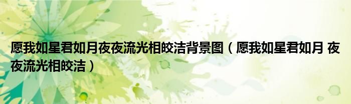 大家好,小君来为大家解答以上问题。愿我如星君如月夜夜流光相皎洁背景图,愿我如星君如月 夜夜流光相皎洁很多人还不知道,现在让我们一起来看看吧!