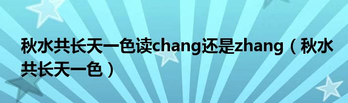 大家好,小君来为大家解答以上问题。秋水共长天一色读chang还是zhang,秋水共长天一色很多人还不知道,现在让我们一起来看看吧!
