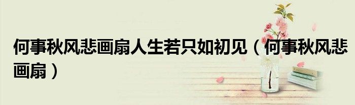 大家好,小君来为大家解答以上问题。何事秋风悲画扇人生若只如初见,何事秋风悲画扇很多人还不知道,现在让我们一起来看看吧!