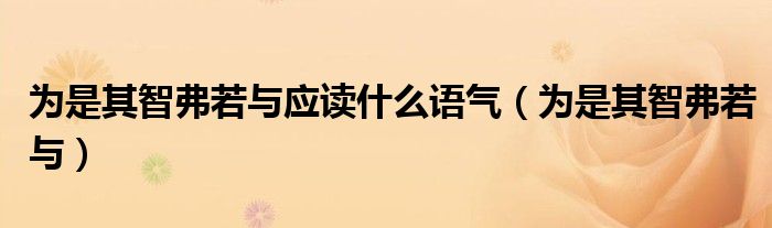 大家好,小君来为大家解答以上问题。为是其智弗若与应读什么语气,为是其智弗若与很多人还不知道,现在让我们一起来看看吧!