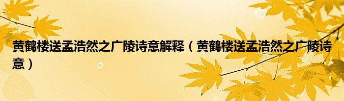 大家好,小君来为大家解答以上问题。黄鹤楼送孟浩然之广陵诗意解释,黄鹤楼送孟浩然之广陵诗意很多人还不知道,现在让我们一起来看看吧!