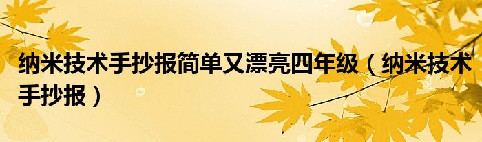 大家好,小君来为大家解答以上问题。纳米技术手抄报简单又漂亮四年级,纳米技术手抄报很多人还不知道,现在让我们一起来看看吧!