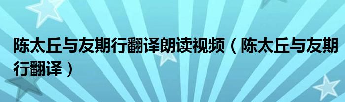大家好,小君来为大家解答以上问题。陈太丘与友期行翻译朗读视频,陈太丘与友期行翻译很多人还不知道,现在让我们一起来看看吧!
