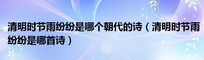 大家好,小君来为大家解答以上问题。清明时节雨纷纷是哪个朝代的诗,清明时节雨纷纷是哪首诗很多人还不知道,现在让我们一起来看看吧!